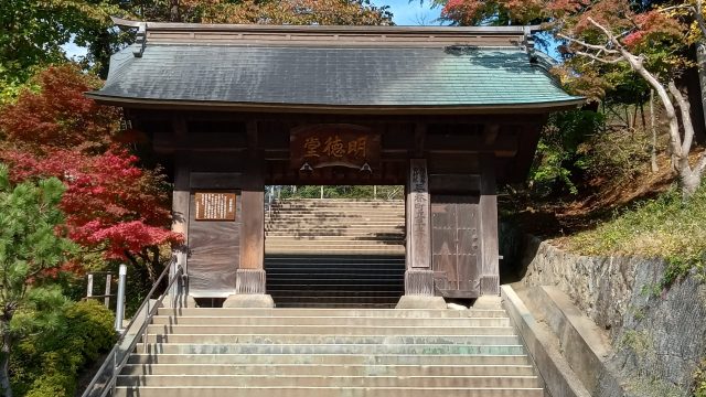 三春城は、1871年(明治4年)の廃藩置県による廃城令によりほとんどの建物や石垣が破却されますが、三春藩の藩校の表門であった明徳堂(焼失により再建されたもの)が三春小学校の校門として移築されています。