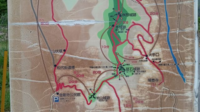 | 城のタイプ | 連郭式山城。下から米山城、砥石城、本城、枡形城と複合的な城郭を形成している |